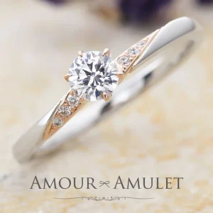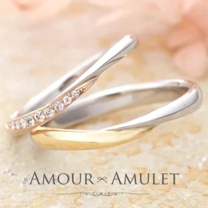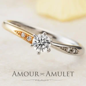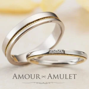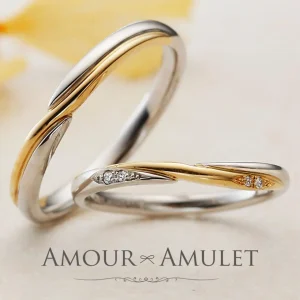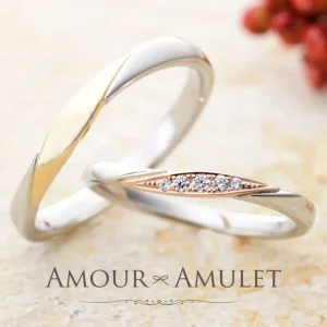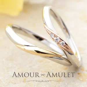 プラチナとゴールドを組み合わせるコンビネーションリングは、金属の融点が異なるため加工が難しく美しいデザインに仕上げるのが困難と言われています。アムールアミュレットは、そのコンビデザインを絶妙な設計でデザインし、美しく仕上げることができる数少ないブランドです。