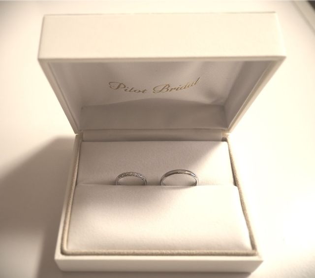 他社さんのものは女性の装飾が派手になると男性のものも同様に少しデザインが奇抜になるものが多く、こちらのリングはとても私たちの希望にマッチしたもので魅力を感じるリングでした✨