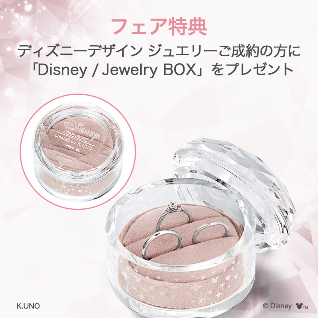 \本日より【ケイウノ】ディズニー/ジュエリーブライダルフェア開催!/期間中にケイウノのディズニーデザイン ジュエリーをご成約いただいた方に、ディズニーデザインのガラス製オリジナルジュエリーケース(非売品)をプレゼント!「ミッキー」のアイコンがさりげなくデザインされています✨