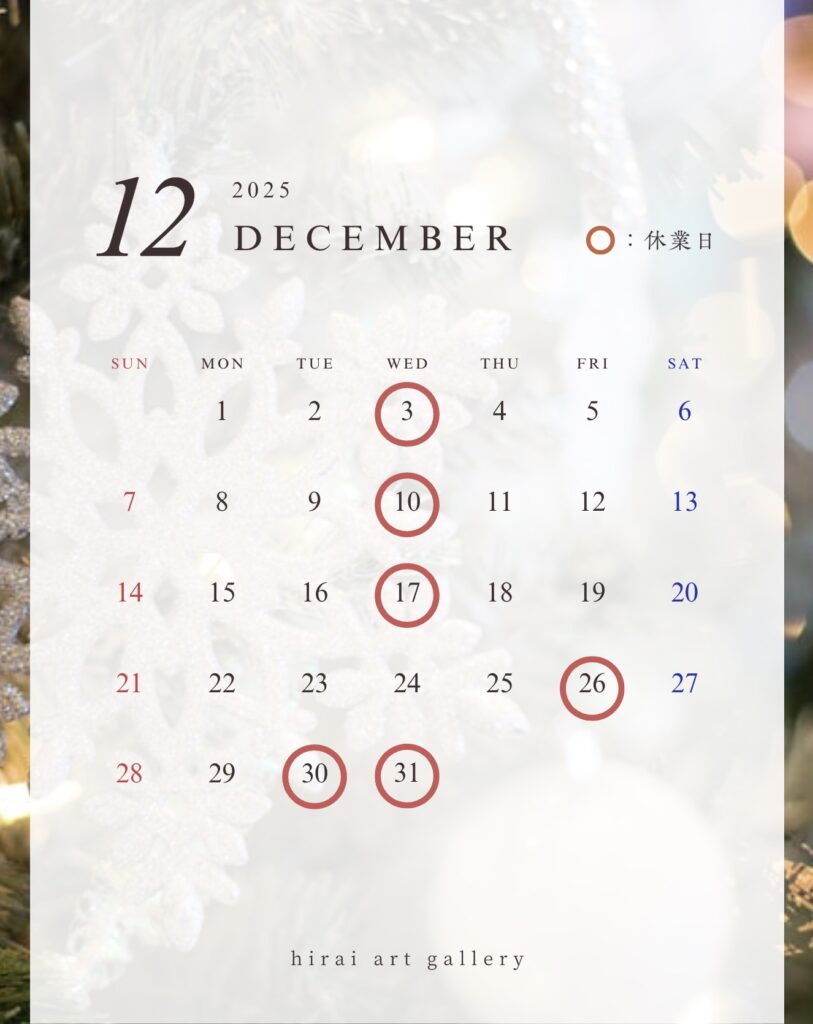 年末年始は、2025年12月30日〜2026年1月3日を休業とさせていただきます。みなさまのご来店を心よりお待ちしております。