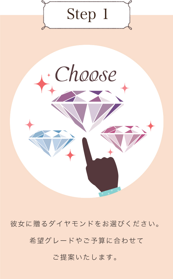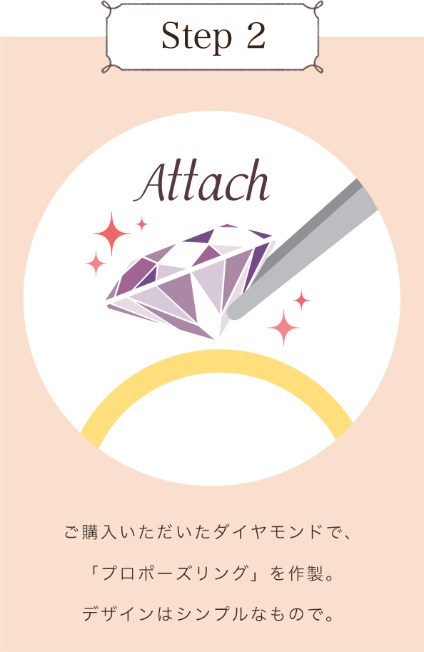一方、サプライズプロポーズプランの場合は、当日はお選びいただいいたダイヤモンドの金額と、仮でお留めするシルバーの枠代(¥10,000)をお支払いいただきます。