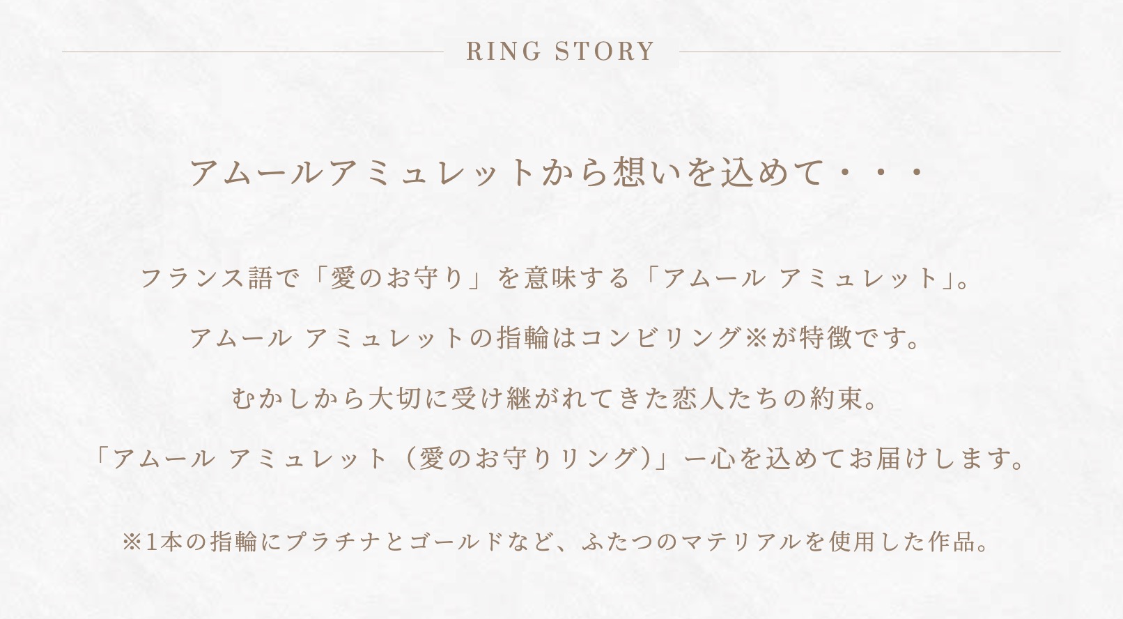 むかしから 大切に受け継がれてきた 幸せのための祈りを薬指に込めて。