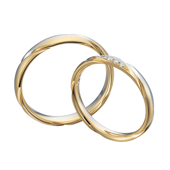 流れるように配されたダイヤモンドと重なり合う2色のマテリアルで