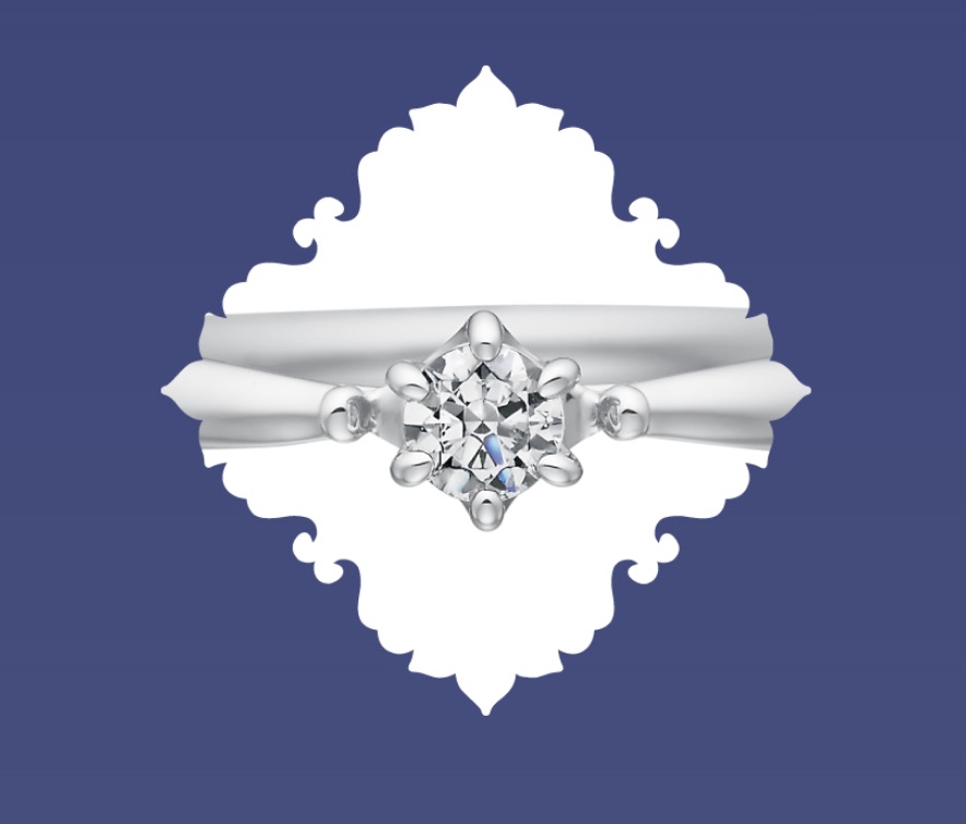 夢を願う強い気持ち、心の煌めきと美しさを、1石のダイヤモンドとキラキラ型の透かし石座で表現しています。
