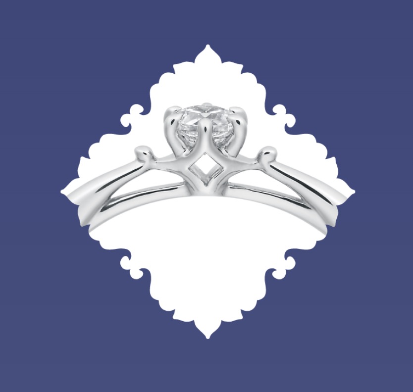 1石のダイヤモンドとキラキラ型の透かし造形でシンプルに力強く表現しました。