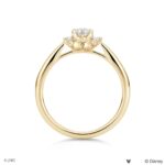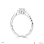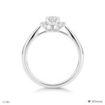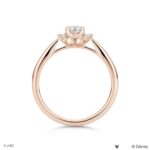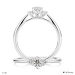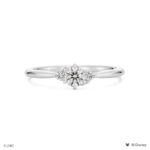 正面から見るとすっきりとしたシンプルなデザインで、センターダイヤモンドに添えたふたつのメレダイヤモンドが可憐な印象をプラスしています。