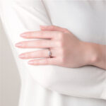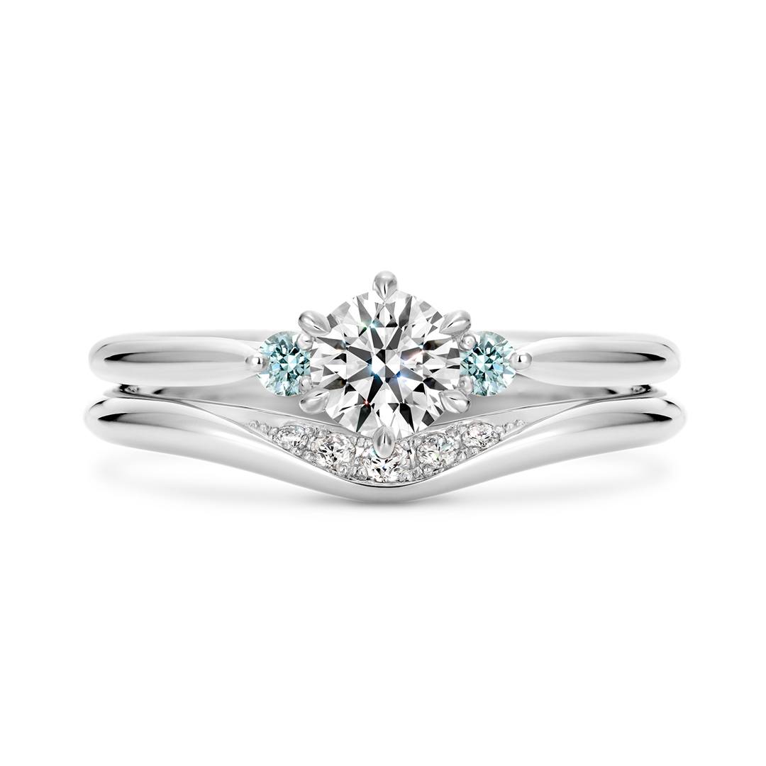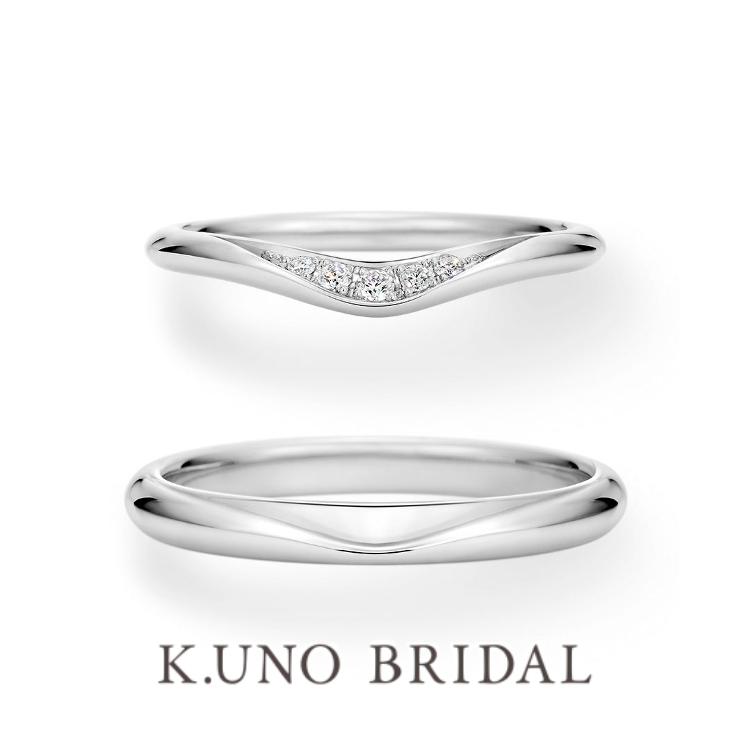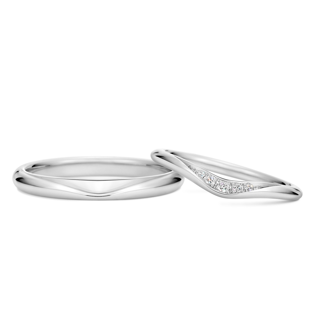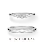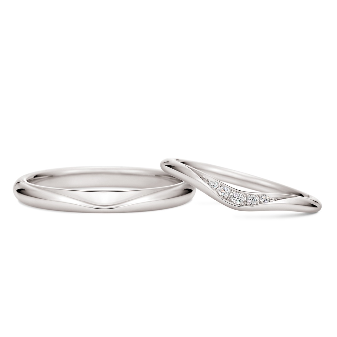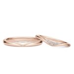 片方には柔らかなカーブに沿うようにメレダイヤモンドがきらめき、上品で可憐な印象を演出します。
