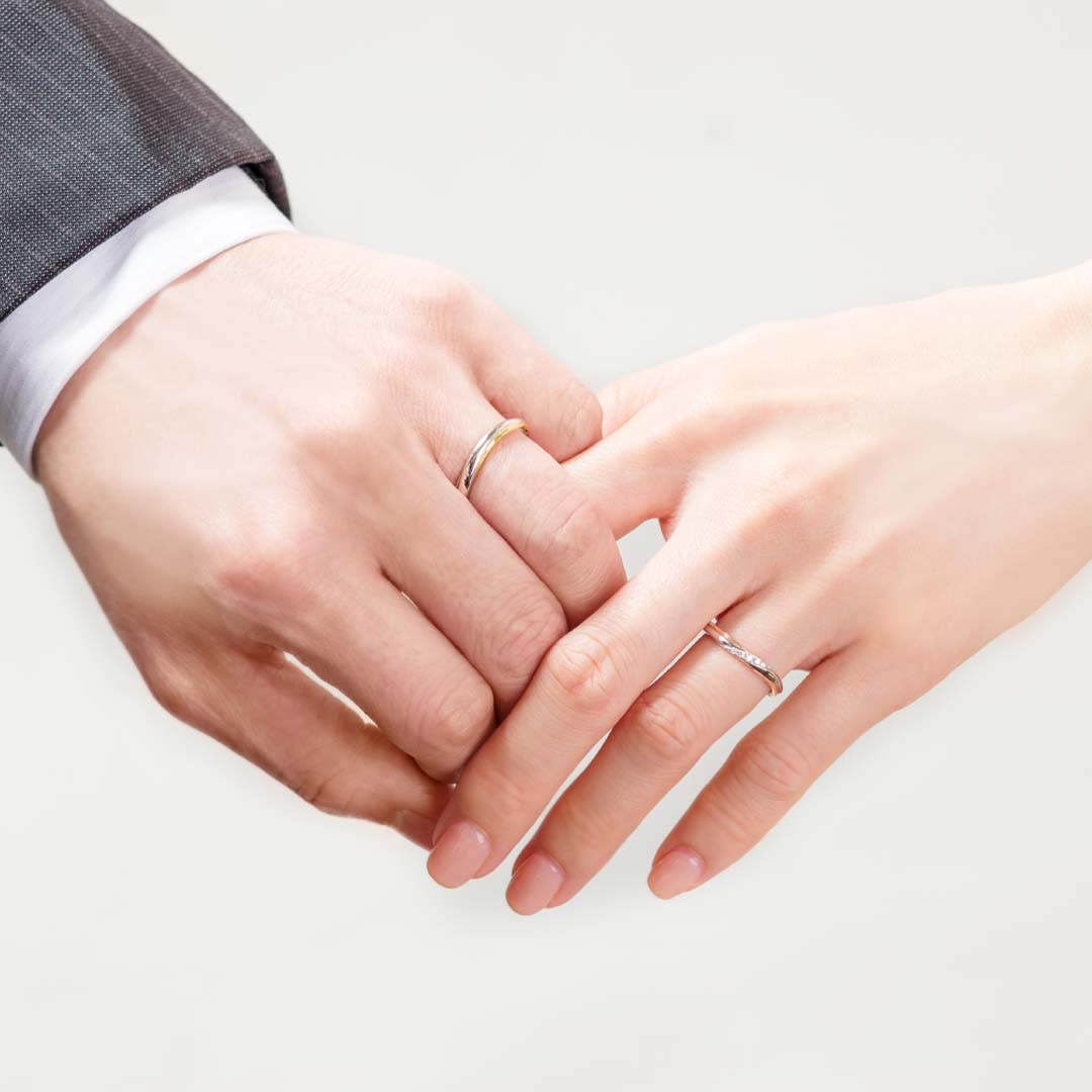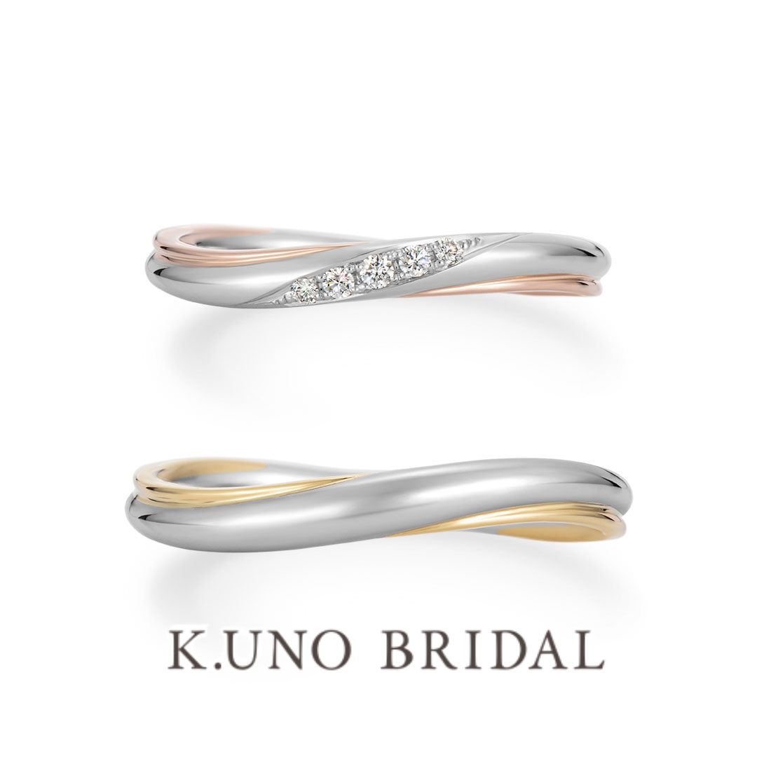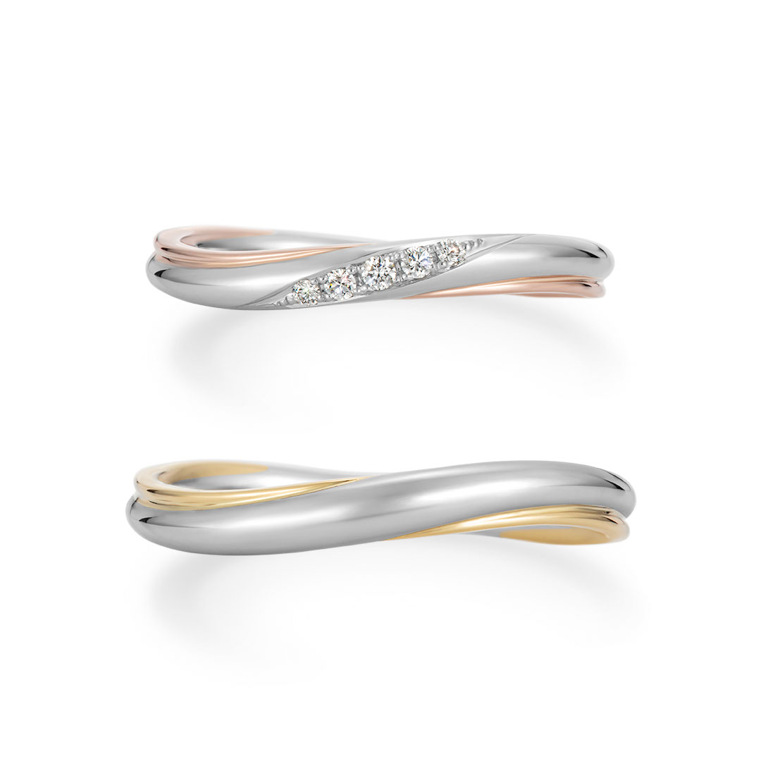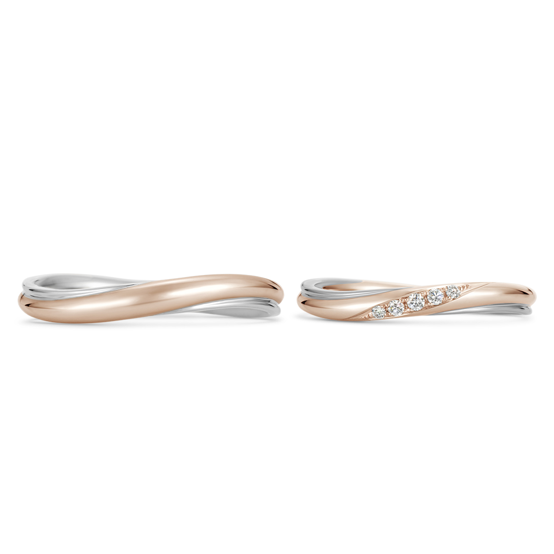 ゆるやかな動きのあるウェーブラインは自然と手元になじみ、指輪に慣れていない方でも身に着けやすいデザインです。