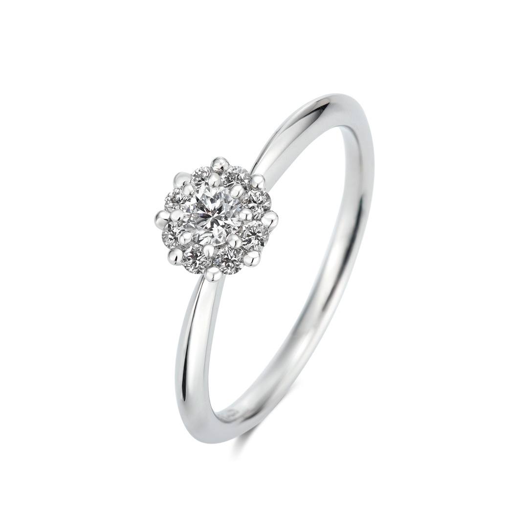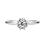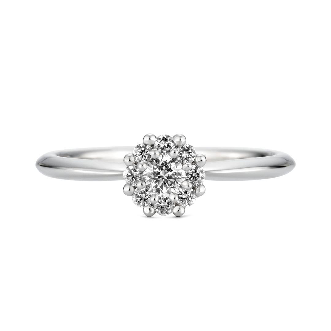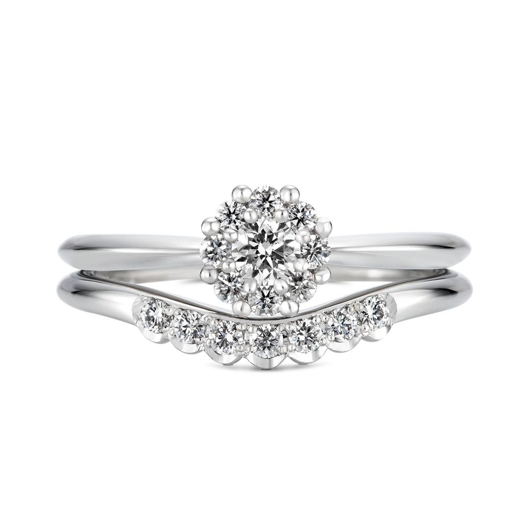 中央のダイヤモンドをメレダイヤが囲んでいるデザインは、石を大きく魅せてくれます。