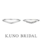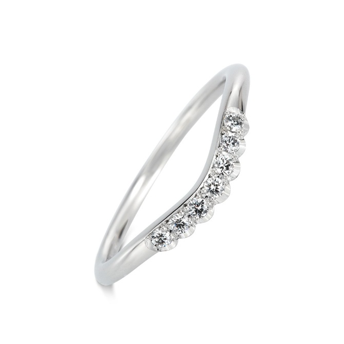その柔らかいラインは、メレダイヤがセンターダイヤをとりまく華やかなエンゲージリングとピッタリ。