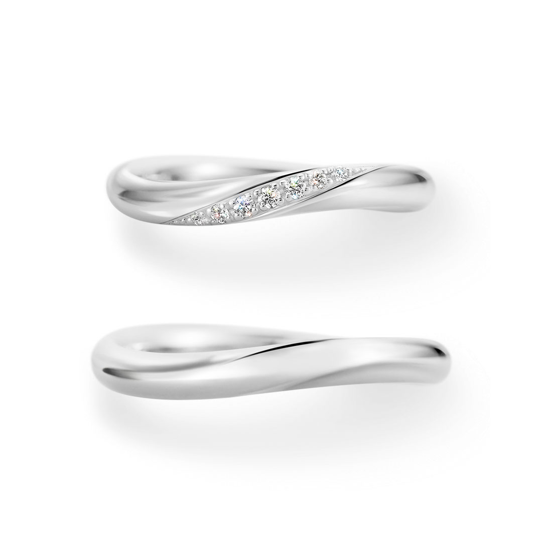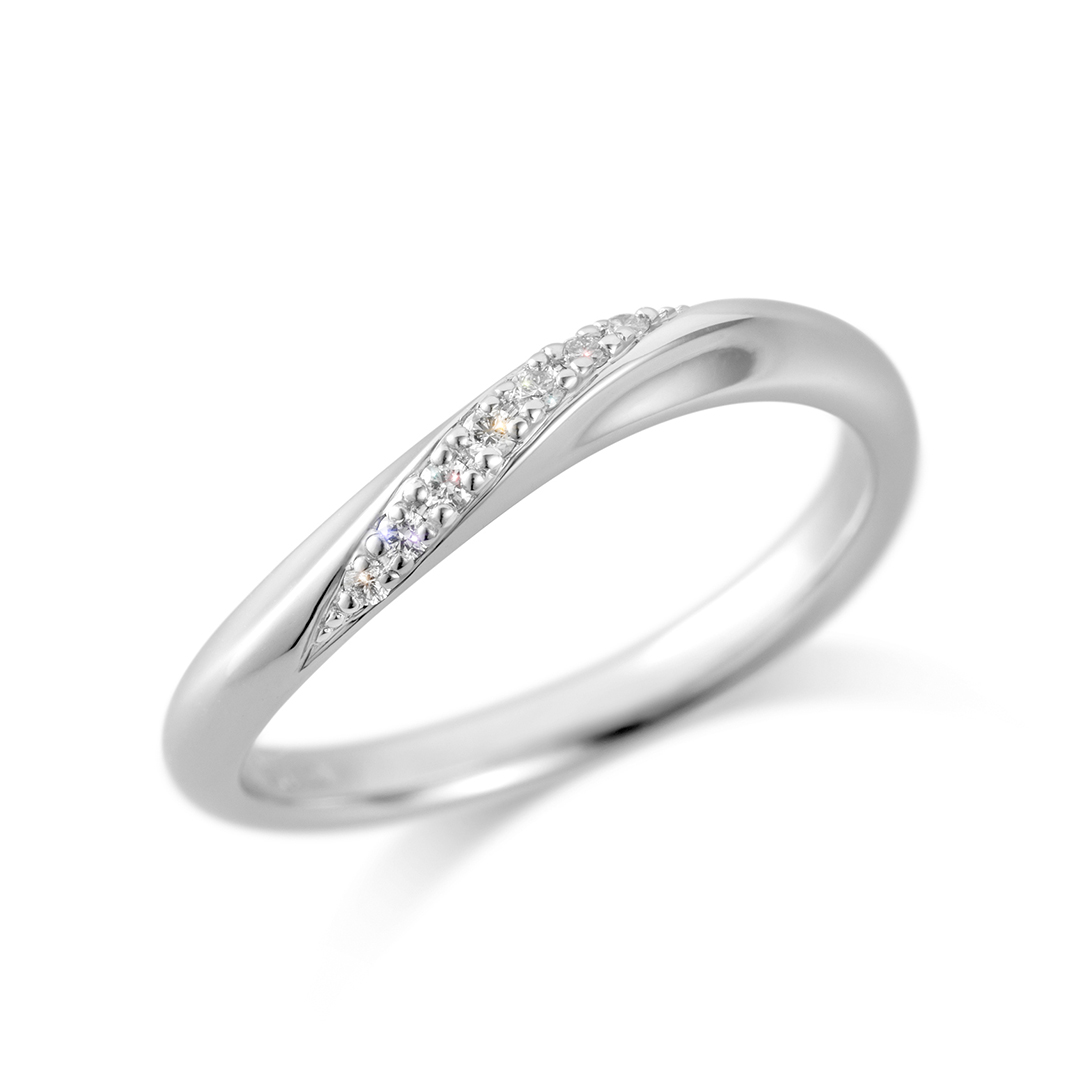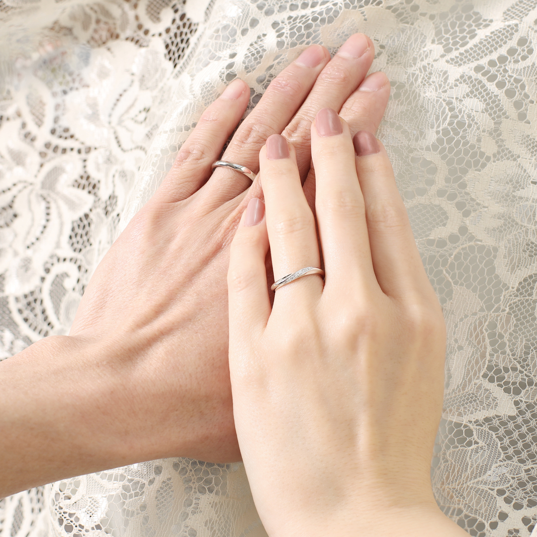 シンプルで細身のデザインながらも、リングの内側に独自の内甲丸仕上げを施しているため、まるでシルクのように優しく肌になじむ着け心地を感じていただけます。