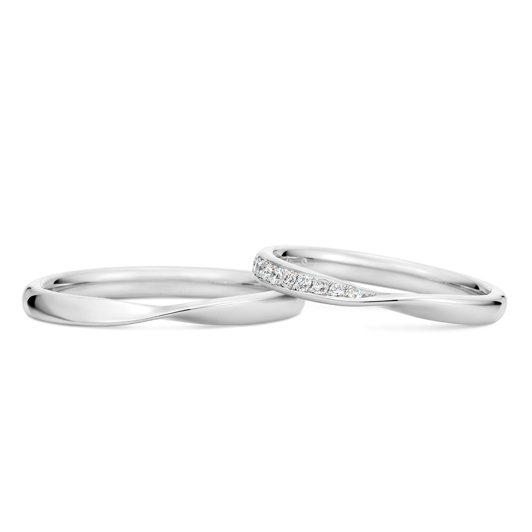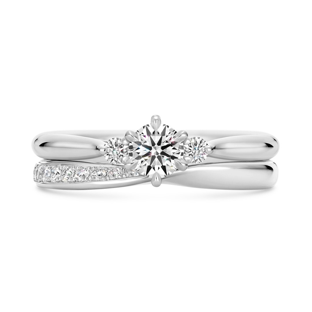 ストレートラインの婚約指輪と重ね着けしやすい結婚指輪です。