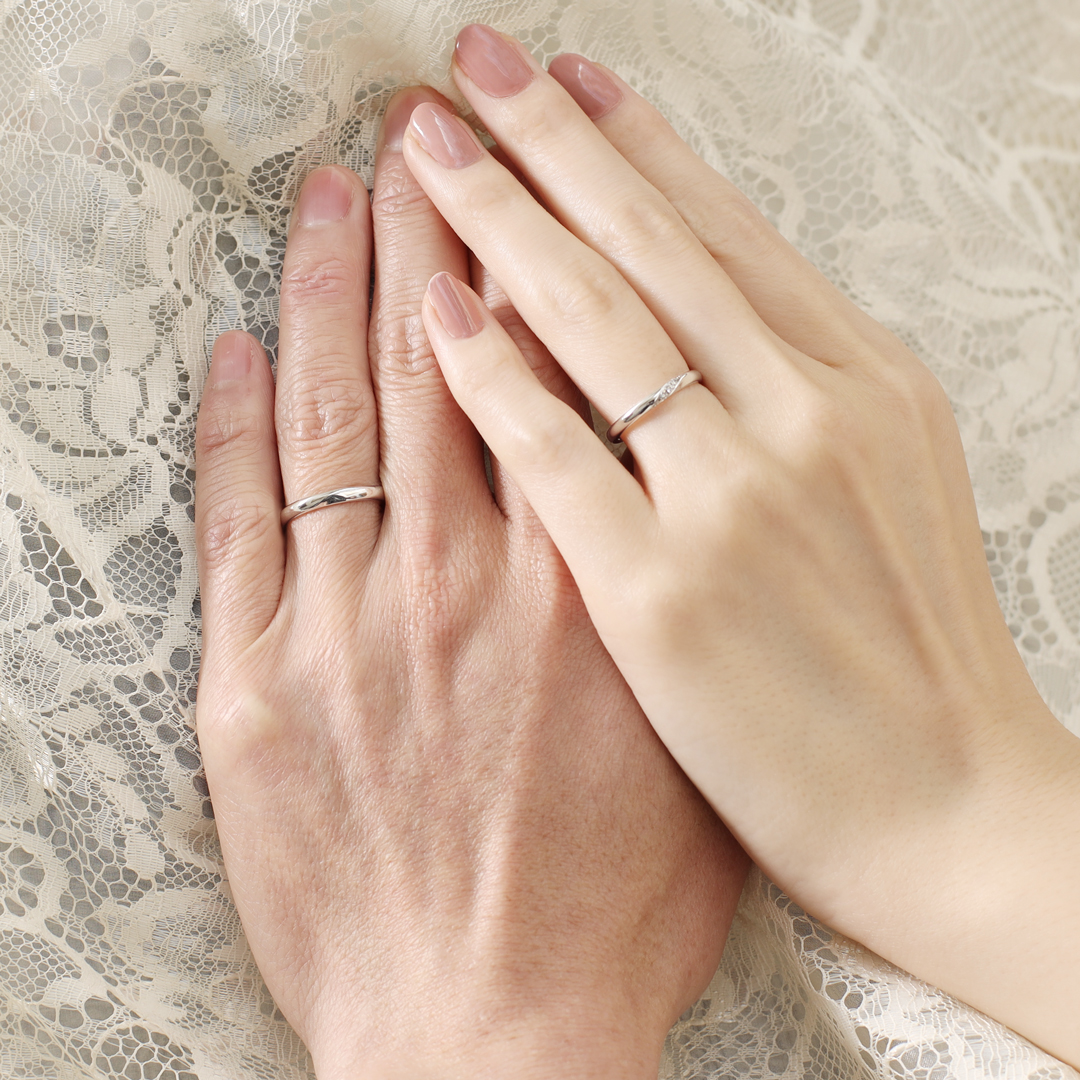 リングの内側に独自の内甲丸仕上げを施しているため、まるでシルクのように優しく肌になじむ着け心地を感じていただけます。