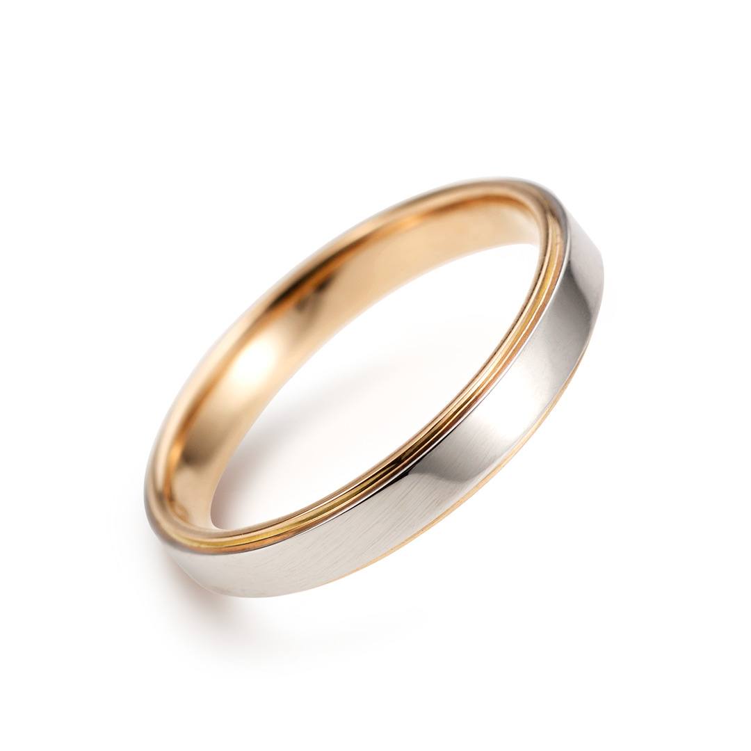 リングのふちに覗くカラーゴールドが、スタイリッシュな雰囲気の中にどこか温かみを感じさせてくれます。