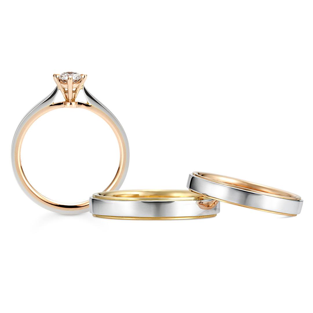 日が昇り、日が沈む。プラチナとカラーゴールドが作る美しいラインはふたりで見つめる穏やかな水平線のよう。