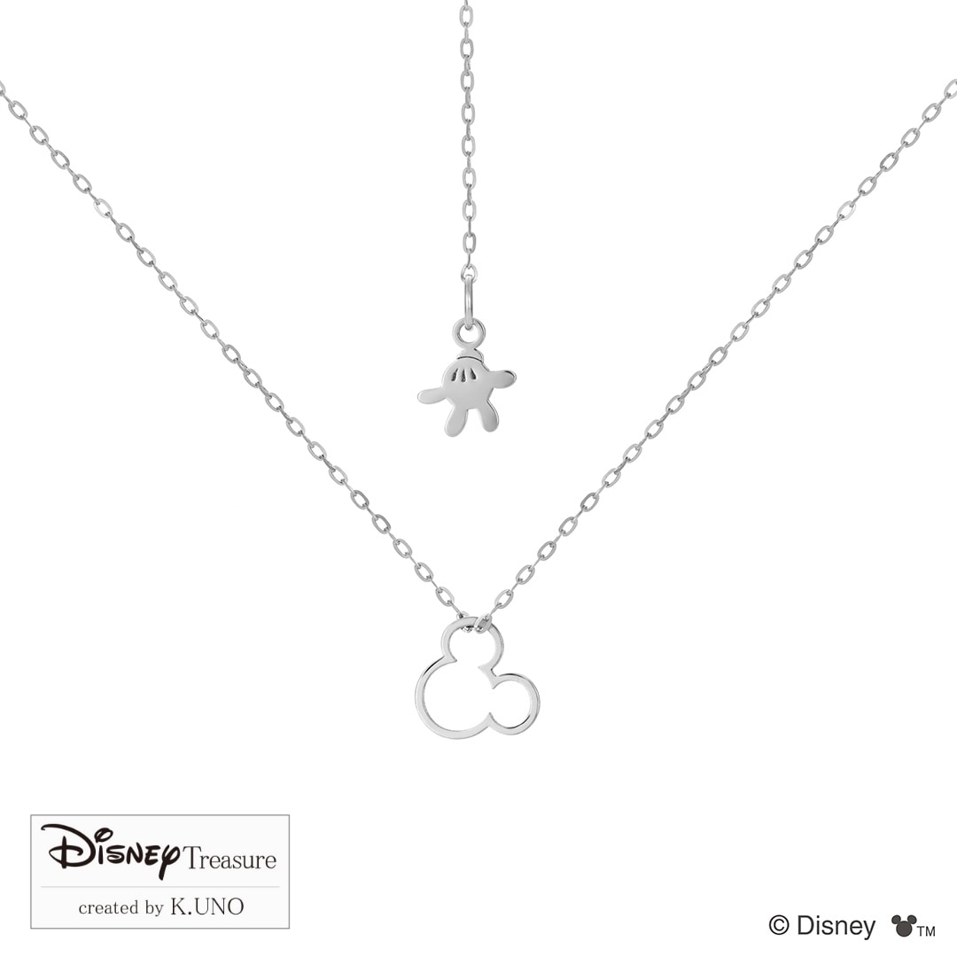 【ディズニー】 K.uno ケイウノ / ミッキーマウス アイコン ネックレス K10ホワイトゴールド レディース