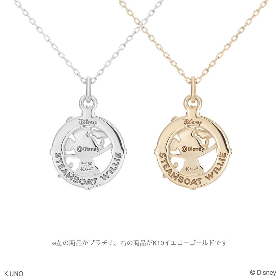 「ミッキー」の映画シリーズとして最初に公開された『蒸気船ウィリー』をモチーフにしたネックレス。
