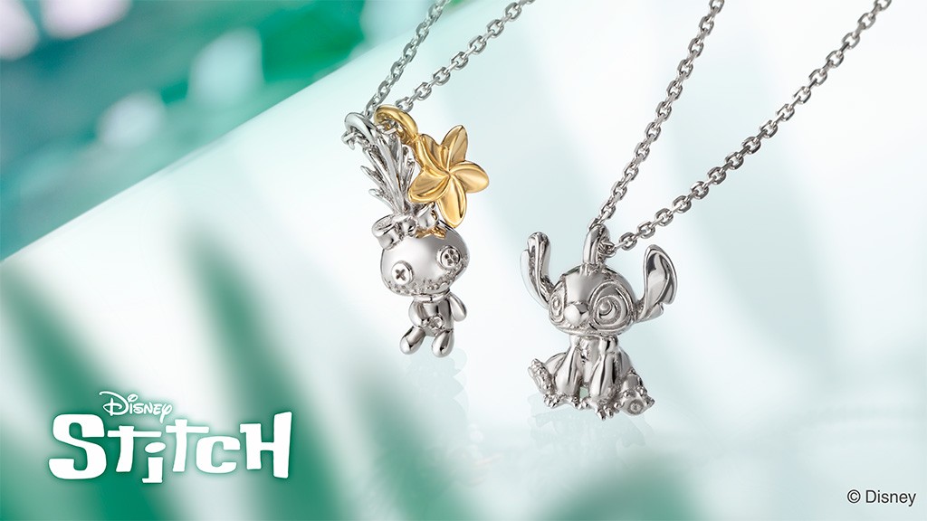 バックチャームはストーリーの中で「スティッチ」が弾くギターがモチーフ。シルバー製で、カジュアルに身に着けられるネックレスです。