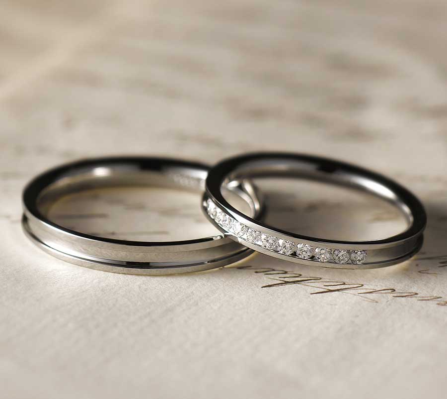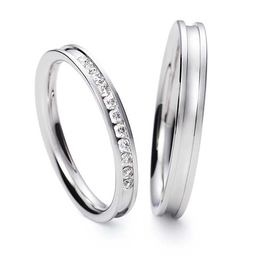 練達の職人技がうみだす、ずれのないまっすぐなふたつのラインがダイヤモンドのリュクスな煌めきを支えます。