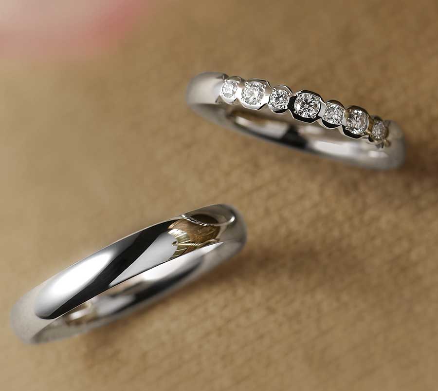 ※地金の硬度をあげる鍛造製法により無類の強さをそなえ、マリッジリングにふさわしい縁起のいいシームレス製法(継ぎ目がない)でつくられています。