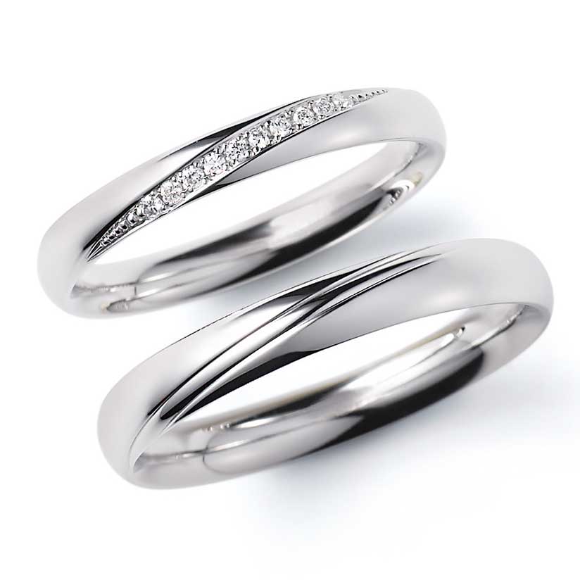 流線ラインにあわせてダイヤモンドをセッティングした、シンプルかつエレガンスなデザイン。