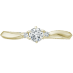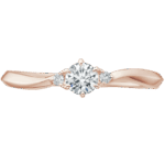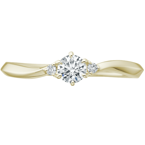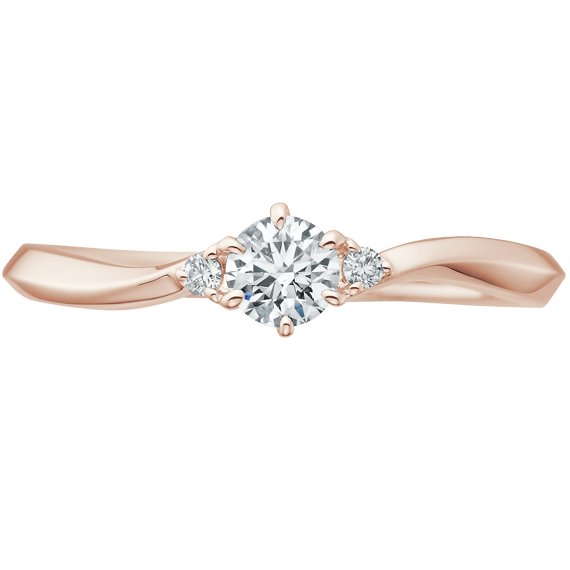 中央に向かう腕のひねりが光を取り込みダイヤモンドとともにリング全体を輝かせます。